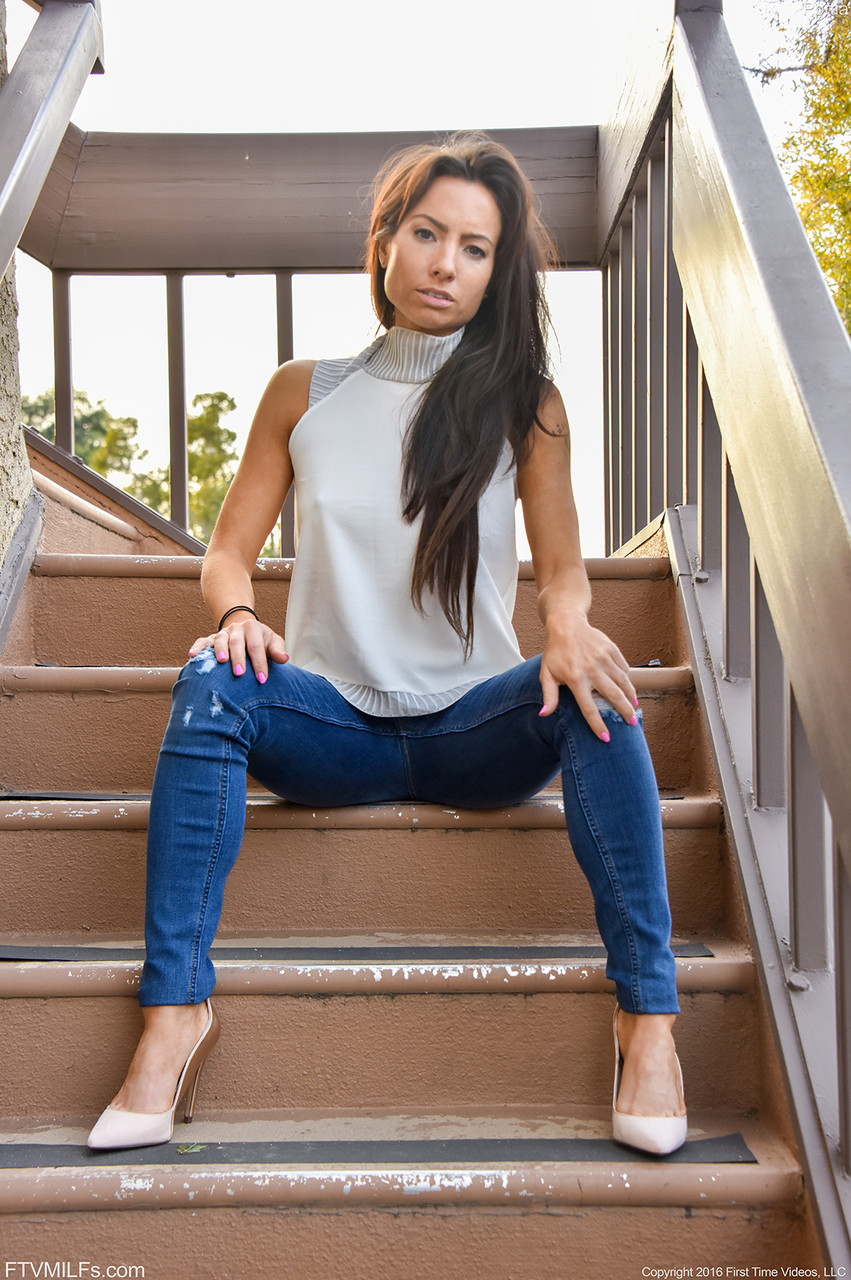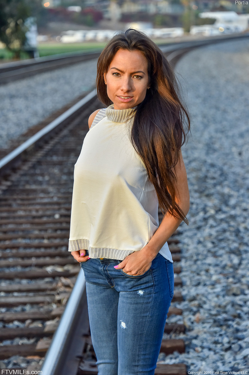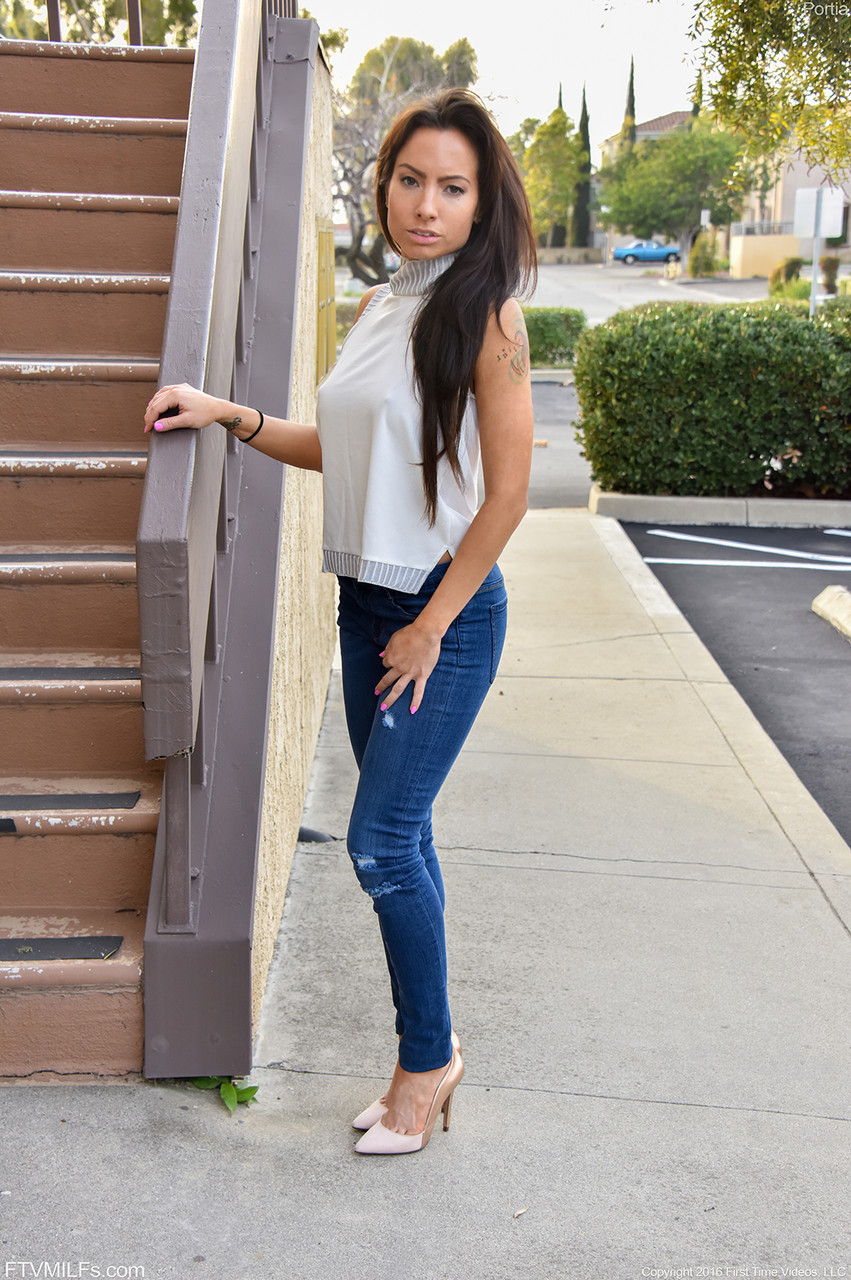 Фотосет Горячая милфа Порция дает захватывающие виды на свои сексуальные сиськи и бритую киску на публике в категории: