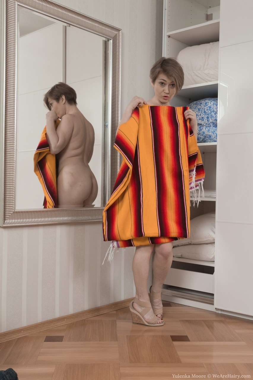Фотосет Коротышка с пухлой киской Yulenka Moore раздевается в раздевалке, чтобы поиграть в волосатую киску в категории: