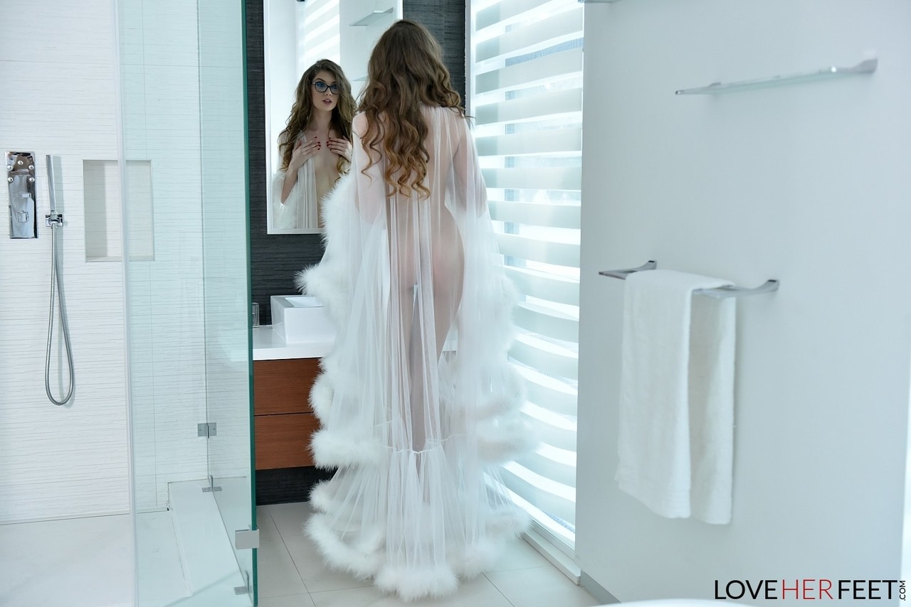 Фотосет Русская потаскушка в очках Елена Кошка эротично позирует в чистом белье в категории: