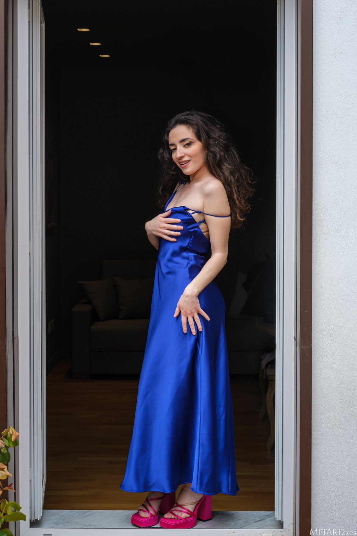 Фотосет Сногсшибательная брюнетка Lainet снимает свое длинное голубое платье и обнажает свое потрясающее телосложение и сочные булки в категории: